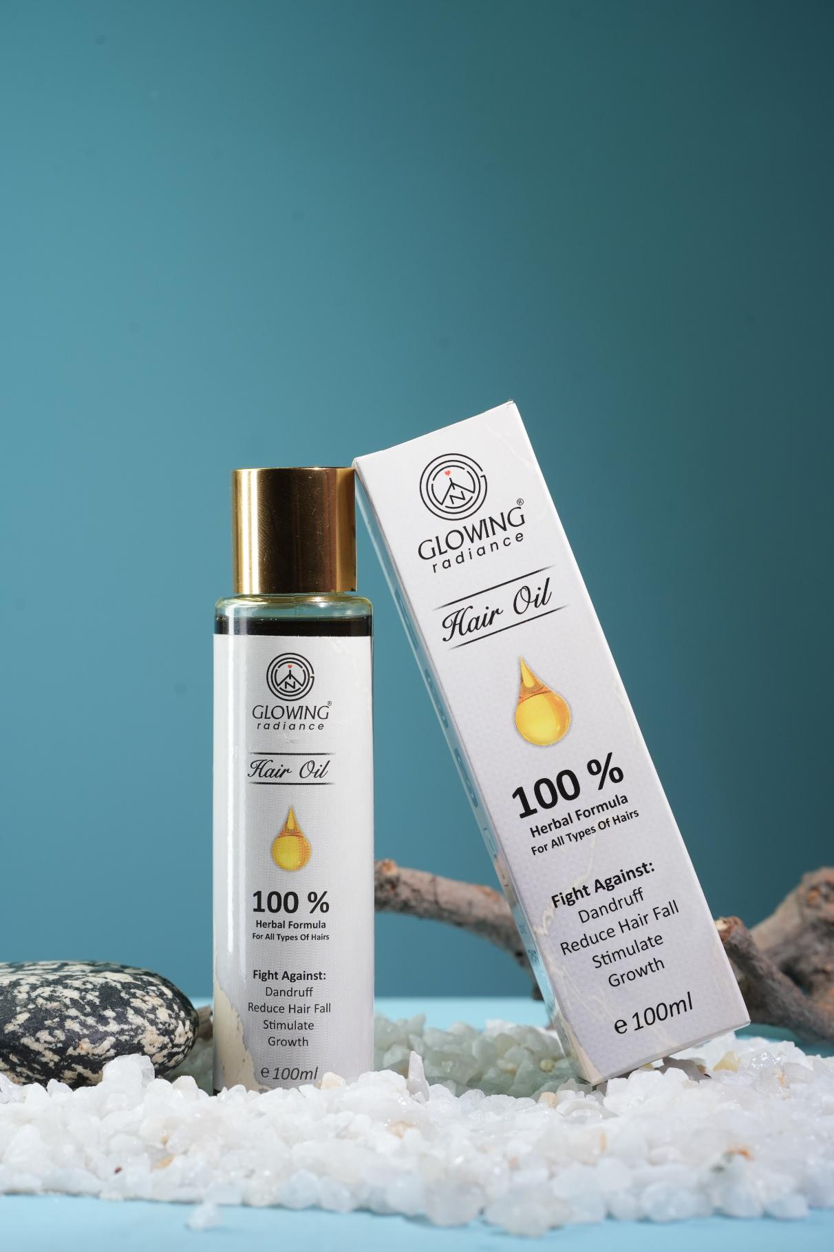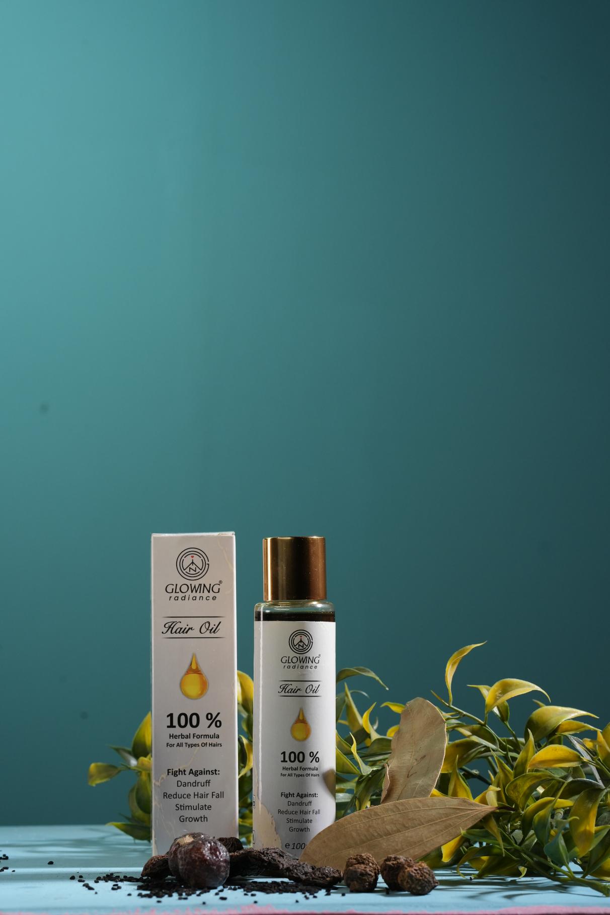 Glowin Radiance Hair Oil is a powerful blend of natural herbs and essential oils, designed to strengthen hair from the roots, prevent breakage, and boost hair growth.